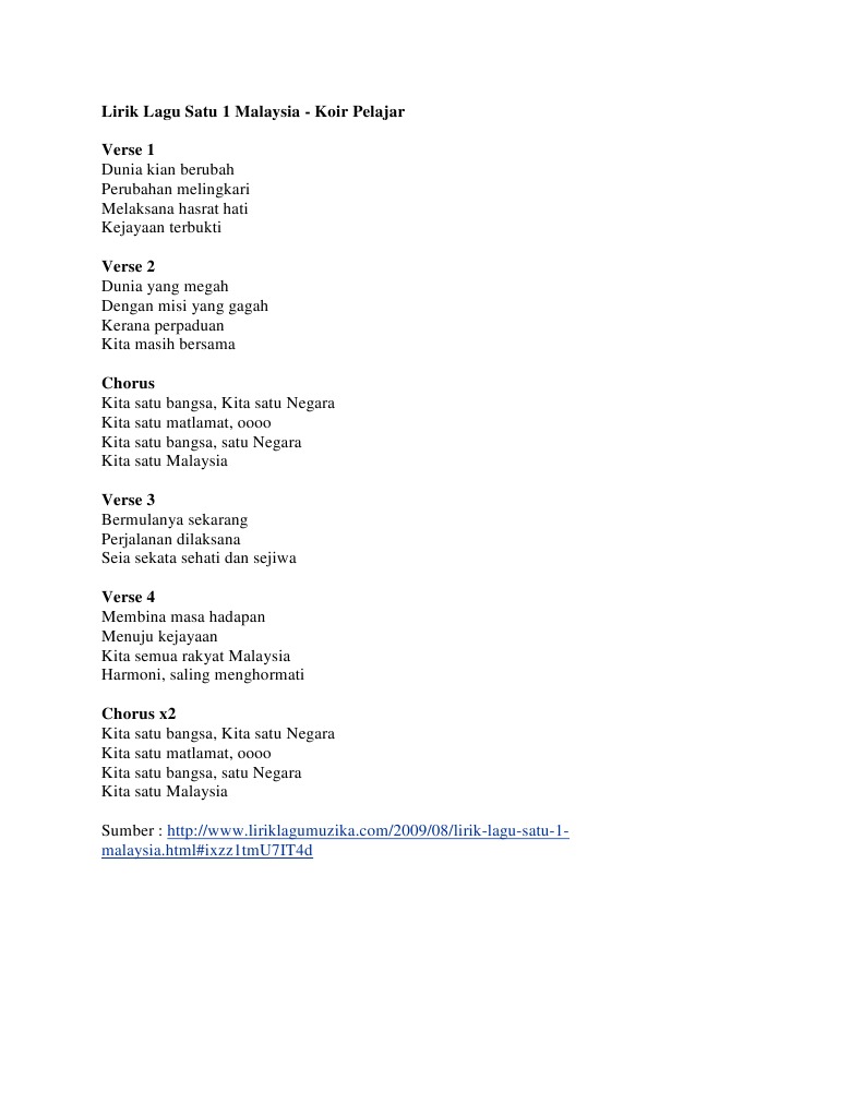 Lirik Lagu Satu 1 Malaysia Pdf